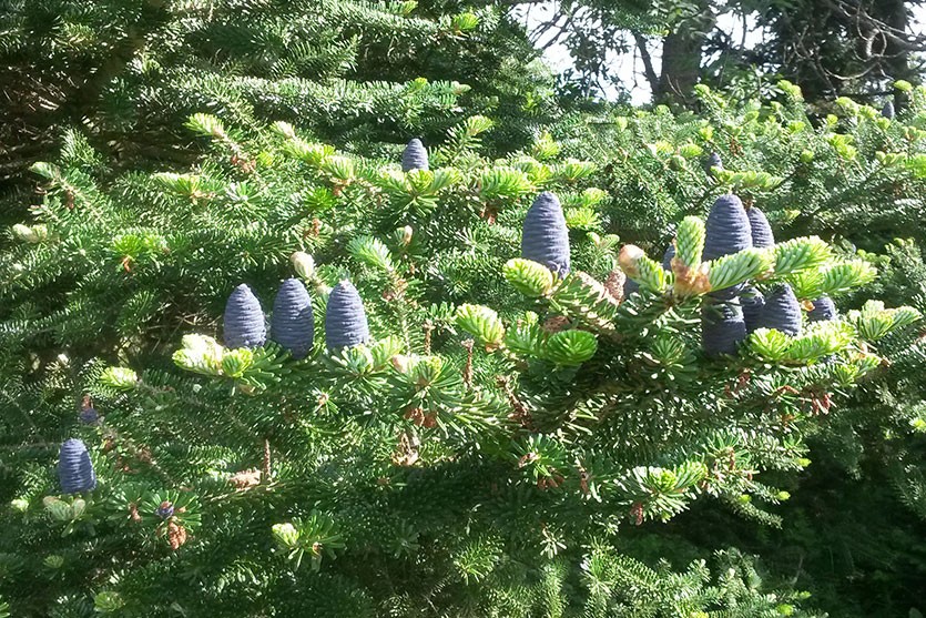 Пихта корейская наполнена очарованием. Уже в молодости она начинает в изобилии плодоносить. Превосходные, направленные вверх, на фоне зеленой хвои фиолетово-пурпурные шишки, придают дереву изумительный вид. Благодаря своей декоративности пихта корейская широко культивируется во всем мире.