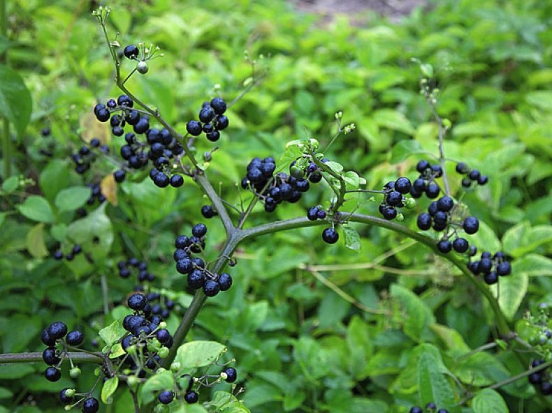 Чашечка ядовитого растения белладонны, или белладонны смертоносной, во много раз больше. Знак отличия от Nature’s Garden Сэмюэля Тайера. Фото предоставлено: «Atropa belladonna» от anro0002 под лицензией CC BY-SA 2.0 Существуют и другие токсичные пасленовые. Горько-сладкий паслен ( Solanum dulcamara ) производит пурпурные цветы и ярко-красные продолговатые ягоды, поэтому, если вы можете отличить красный цвет пожарной машины от черного, вы сможете избежать случайного употребления этого растения.