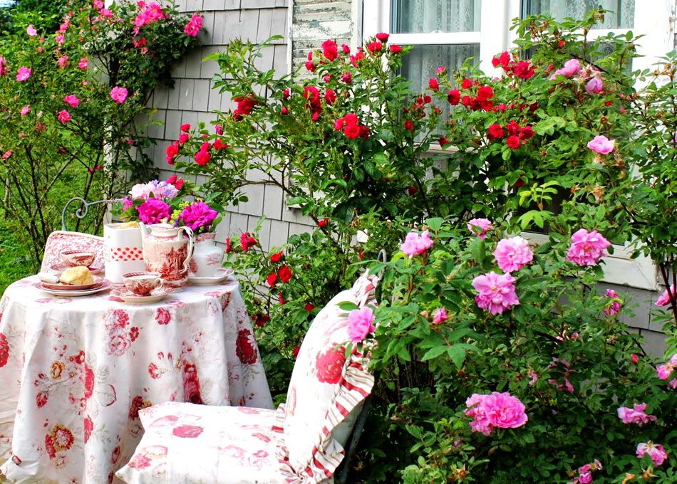 - Розовые кусты живописно обрамляют участок или отдельные его зоны: уютный хозяйственный дворик от прелестного островка для отдыха. Однорядную «границу» в саду проложат метровые кустики, расстояние между которыми – до полуметра.