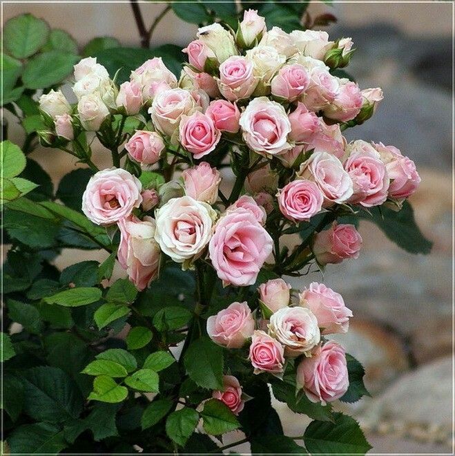 - Полиантовая (многоцветковая) (Rosa Multiflora nana) – целая группа подсортов. Одна такая кустовая роза может нести от 20 до 100 бутонов одновременно. В ботаническом описании сорта указано, что он подходит для срезки, высадки в саду, на балконе, выращивания в комнатных условиях. Он неприхотлив, не теряется окрас листвы на открытом солнце, устойчив к переменам погоды.