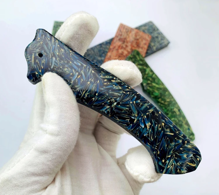 Это материал на основе целлулоида, окрашенный и пропитанный материалами. Он использовался в основном на ножах, изготовленных до 1940 года.
