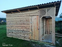 Если хочется сделать навес возле сарая, то это также следует учесть при сооружении каркаса. Обычно это небольшое пространство используется для отдыха после работы, подвешивания умывальника и временного хранения инструмента, который используется. Навес не должен быть слишком большим, чтобы не перегружать конструкцию.