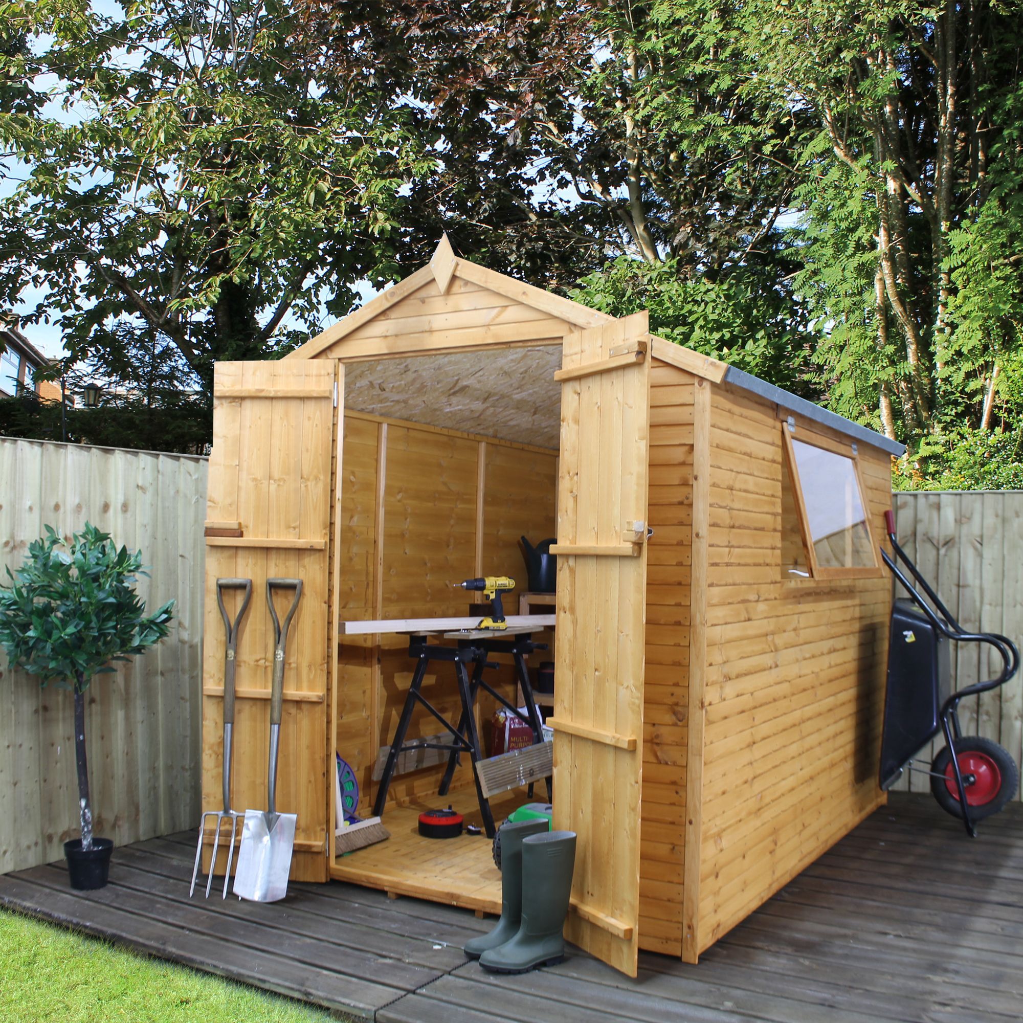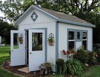 - Для хранения такого садового инвентаря, как секаторы, лопаты и грабли, идеально подойдет сарай размером 1.