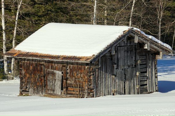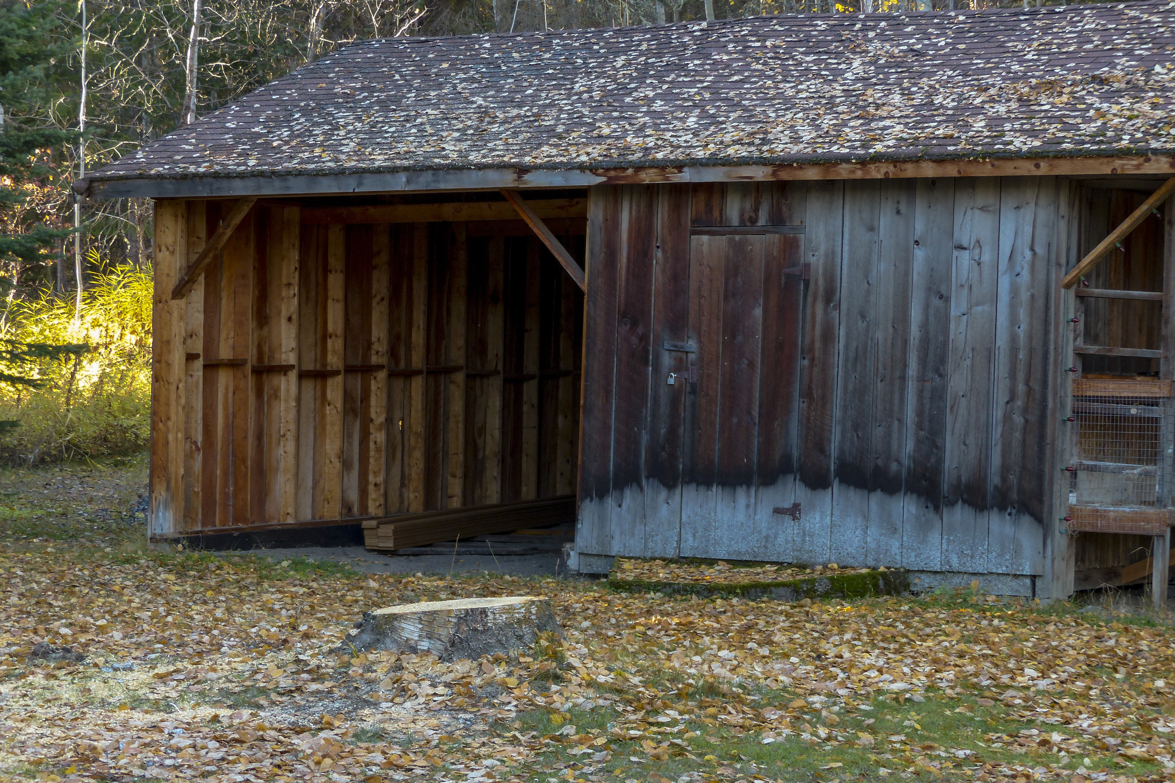 Деревянный сарай может быть построен из сплошного массива дерева: брёвна, брус. Можно даже применять нижнюю часть ствола с корневой системой. Тогда на Вашем садовом участке появится небольшая симпатичная «избушка на курьих ножках».