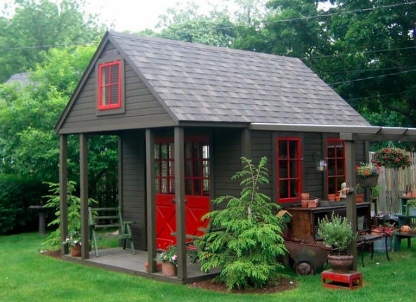 Несмотря на то что сарай предназначен в основном для хранения вещей, это не мешает из него сделать оригинальное сооружение, которое послужит необычным украшением ландшафтного дизайна. Но даже если конструкция и превратится в главный дизайнерский объект, ее все равно не рекомендуется ставить на первом плане при входе во двор.