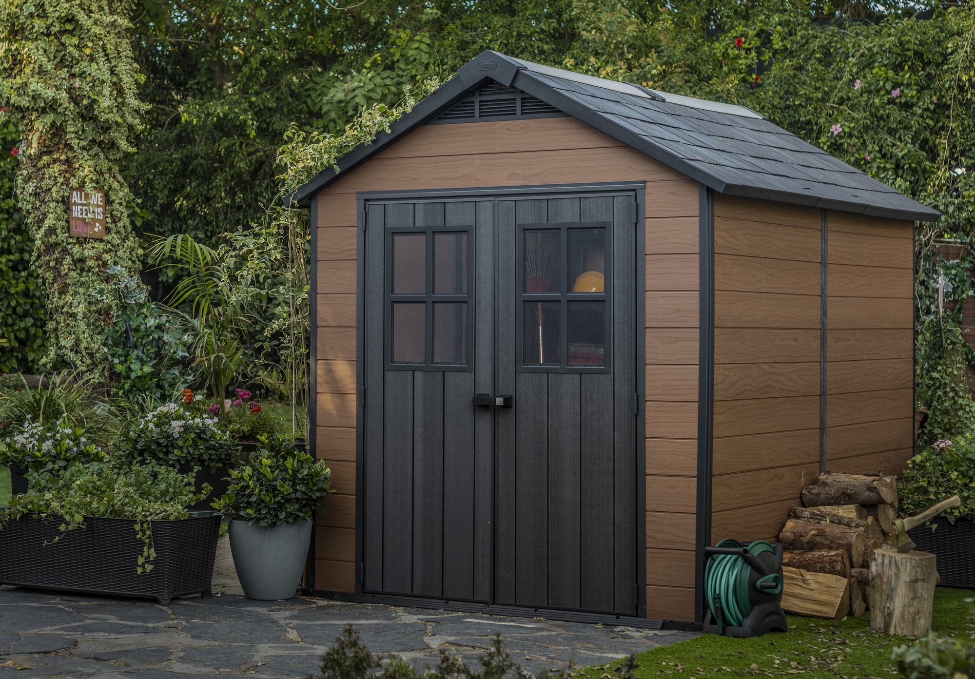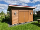 - Если помимо садовых принадлежностей, нужно спрятать такую технику, как насосы, газонокосилки, а также разместить удобрения, краску и прочее, то понадобятся складские помещения не менее чем 2×3 м.