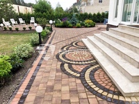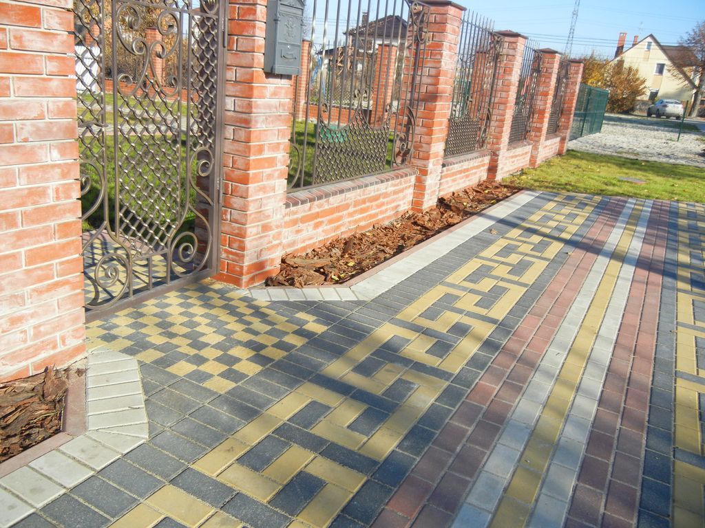 Чаще всего выполняется из брусчатки или кирпичика. В результате применения различных по размеру и цвету фрагментов, позволяет создать оригинальные узоры на террасах и площадках.