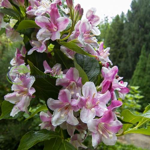 Вейгела ‘Розеа’ (‘Rosea’) — куст высотой 1,5 м, с раскидистой кроной. У вейгелы ‘Розеа’ очень крупные цветы с колосовидным отгибом, розовые, немного пестрят белым.