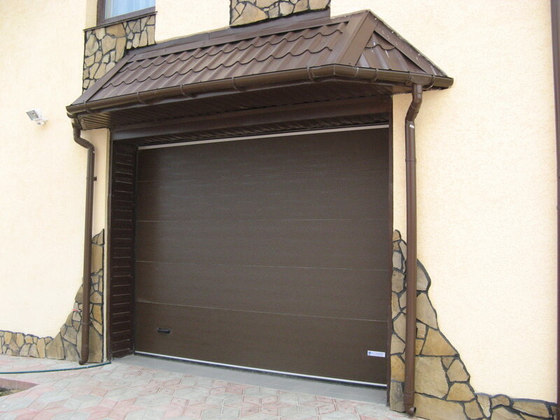 Люди должны иметь возможность свободно выезжать и ставить машину обратно, а значит, стоит выбирать модели не со створками, а со сплошным щитом, который поднимается вверх и скрывается в специальных секциях на потолке.