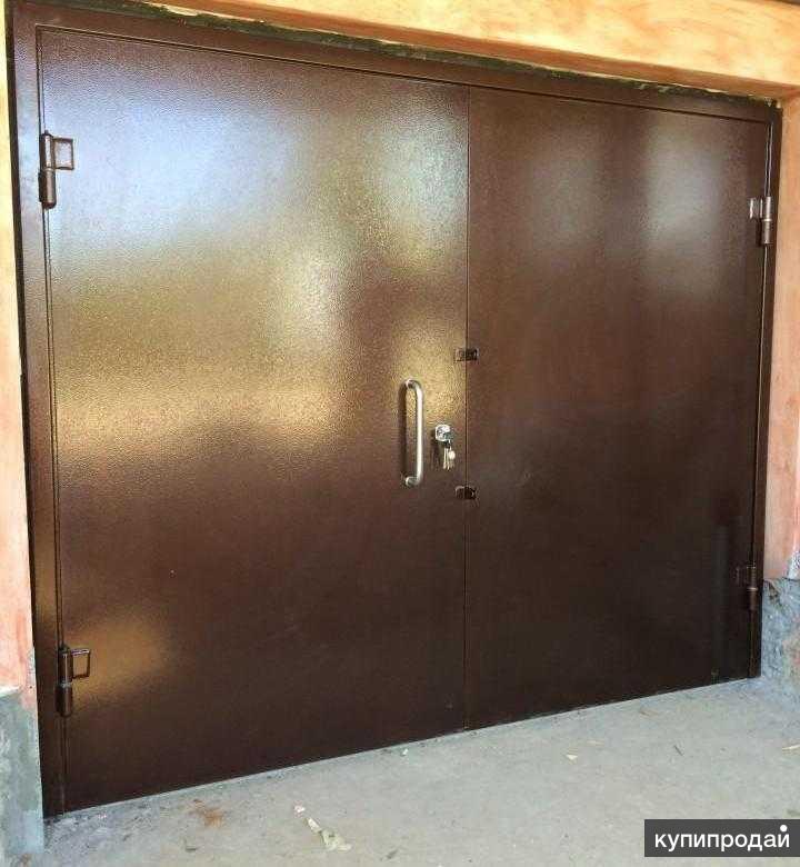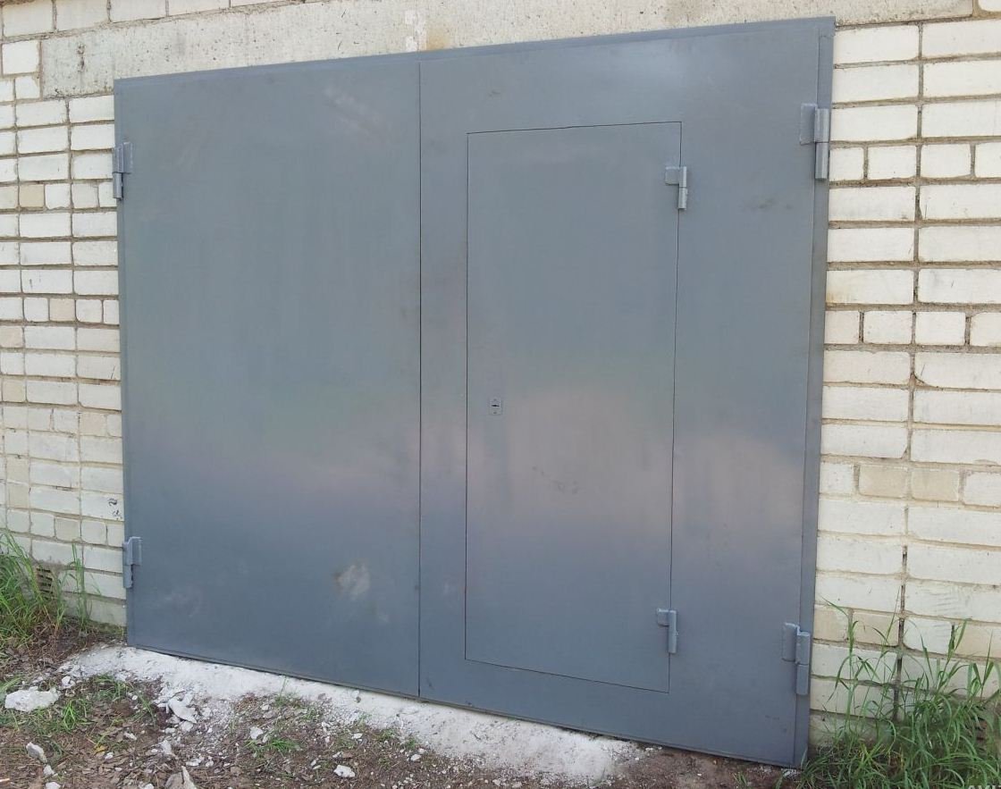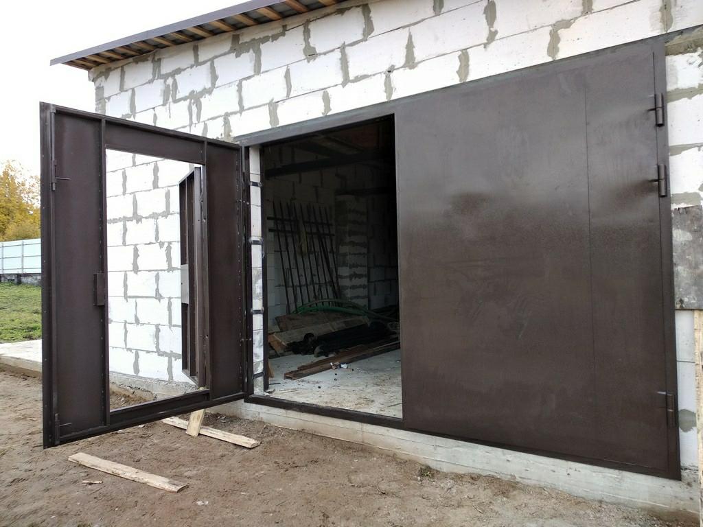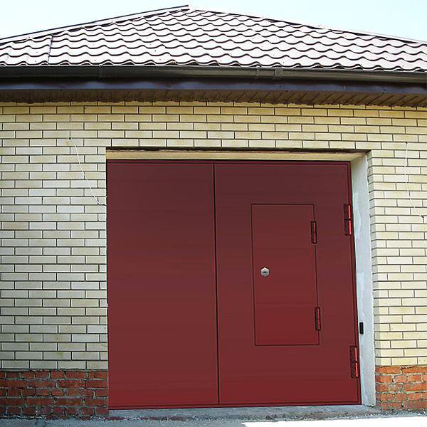 Производятся такие ворота из прочной стали. Ее дополняют и утепляют специальные накладки. Также для облицовки ворот используется сталь или эмаль. Держится вся эта конструкция на прочной раме. Как правило, ее выполняют их таких материалов, как древесина или прочная сталь. Она способна выдержать даже большой вес ворот. Конструкции такого типа не подходят для гаражей нестандартного размера. Даже для помещения, рассчитанного на два автомобиля, человеку придется подыскать другой вариант.