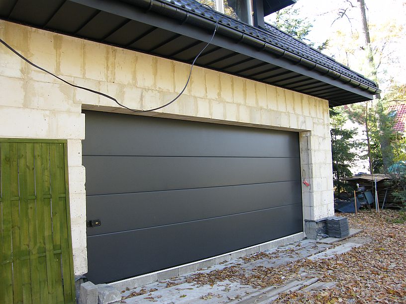 Хорош секционный вариант тем, что ворота открываются, не занимая свободного места рядом с гаражом. Кроме того, они надежно защищены от непогоды. Но есть у такой конструкции и определенный минус: ширина стандартных ворот такого типа не превышает двух-трех метров, поэтому их используют только для стандартных гаражей на один автомобиль.