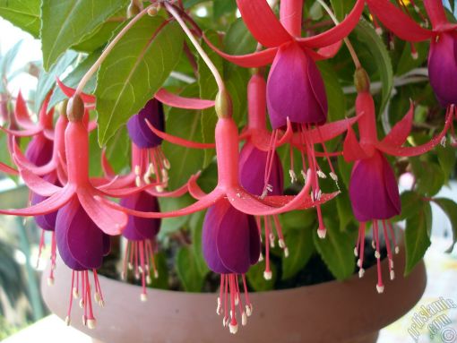 В местах своего естественного обитания фуксия может достигать в высоту 10 м, но в комнатной культуре ее рост намного скромнее. Зато цветки фуксии достойны самых ярких эпитетов: не зря один из пурпурных оттенков получил название в честь этого экзотического растения.