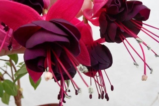Фуксии самой привлекательной особенностью являются их потрясающие и красочные цветы, которые долго сохраняются и плодоносят круглый год в тропиках и от лета до поздней осени в более прохладных регионах.Висячие цветы свисают на тонкой цветоножке, которая выходит из пазух листьев, каждый с 4 длинными и тонкими чашелистиками, которые свисают или могут загибаться вверх, обнажая венчик, состоящий из множества лепестков, из которых выступают тычинки и рыльца. Чашелистики и венчик могут быть как одного цвета, так и контрастные. Помимо того, что фуксии напоминают балерин, их часто называют «женскими ушками», так как их висящие цветы выглядят как большие серьги.