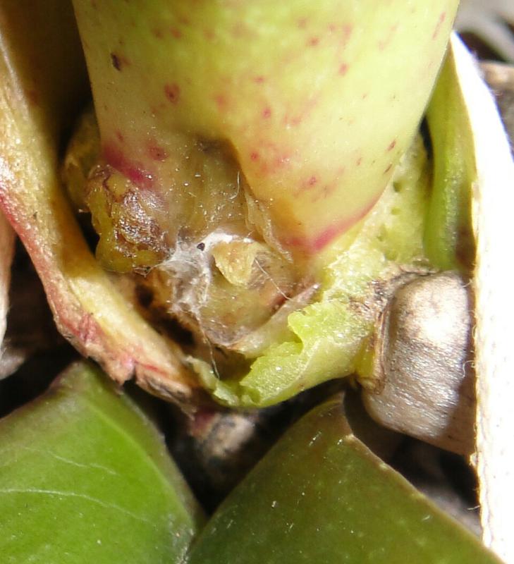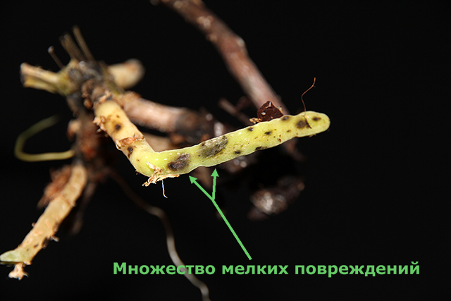 - пожелтение или потемнение оснований псевдобульб у симподиальных орхидей.