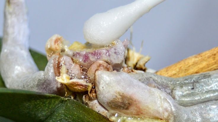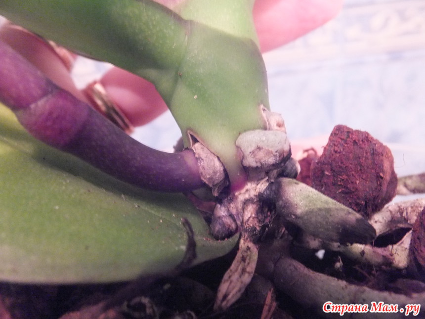 - Сначала происходит поражение грибковыми спорами и по внешним признакам сложно понять, что орхидея инфицирована.