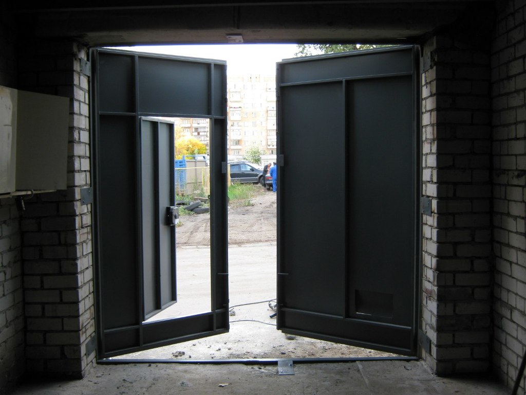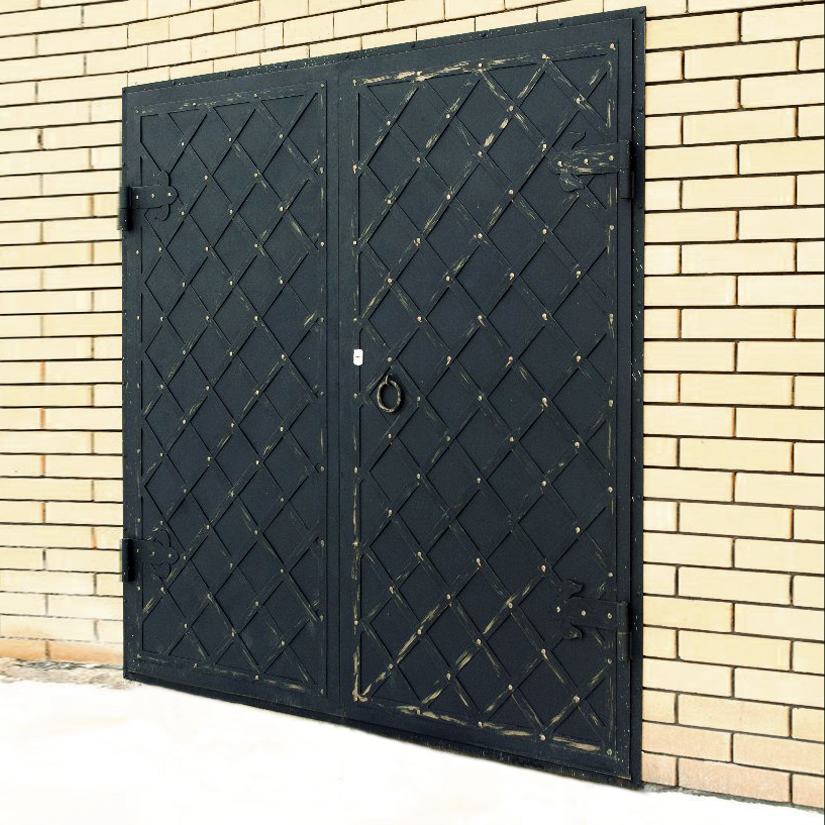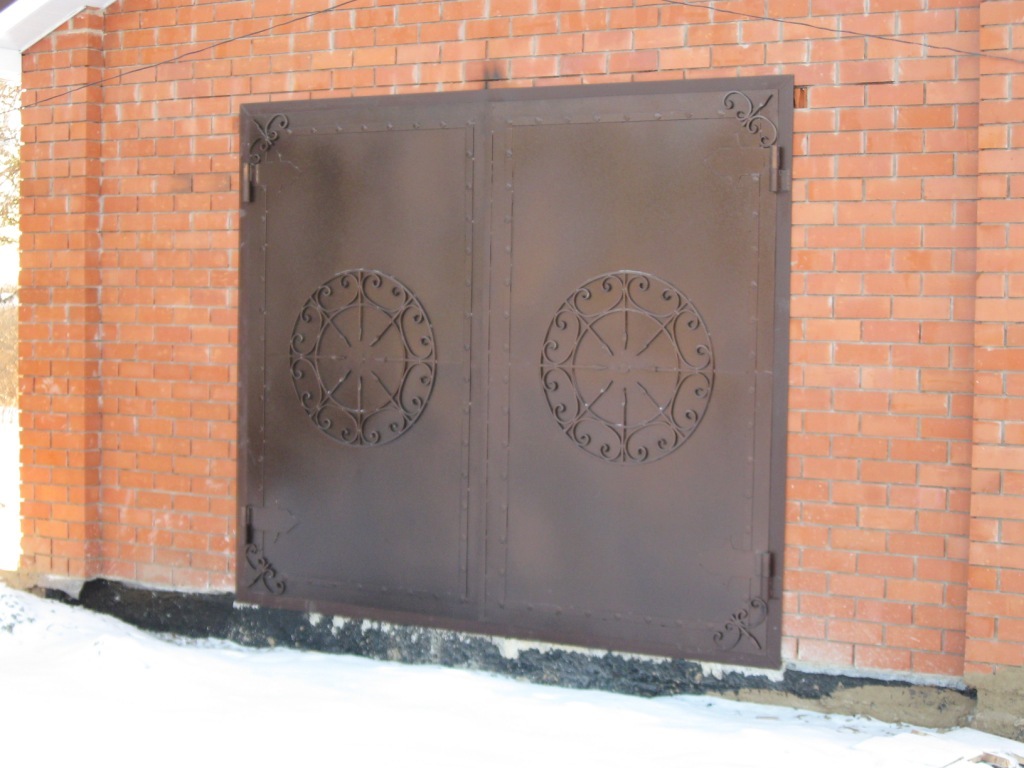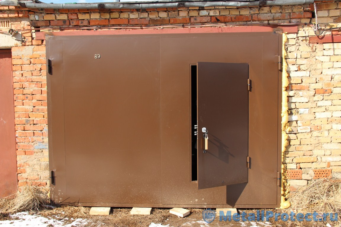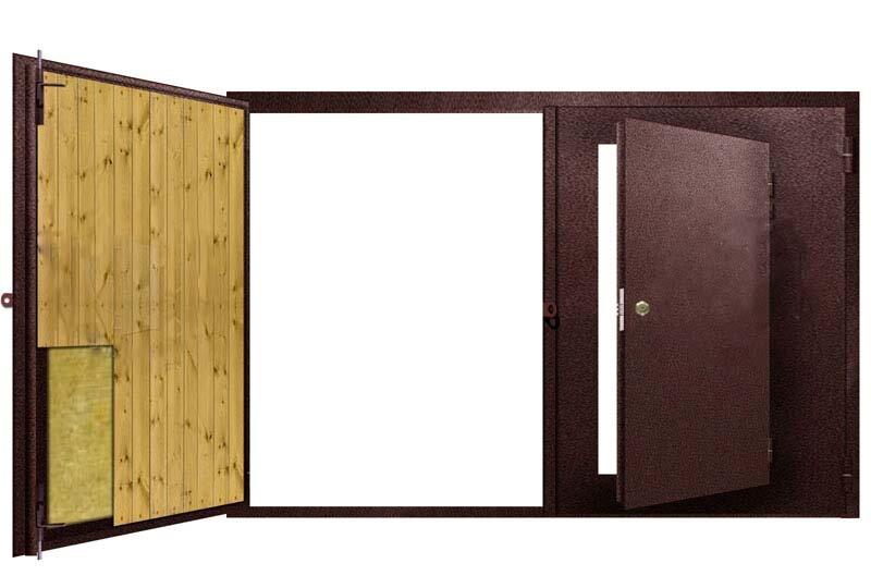 Производятся такие ворота из прочной стали. Ее дополняют и утепляют специальные накладки. Также для облицовки ворот используется сталь или эмаль. Держится вся эта конструкция на прочной раме. Как правило, ее выполняют их таких материалов, как древесина или прочная сталь. Она способна выдержать даже большой вес ворот. Конструкции такого типа не подходят для гаражей нестандартного размера. Даже для помещения, рассчитанного на два автомобиля, человеку придется подыскать другой вариант.