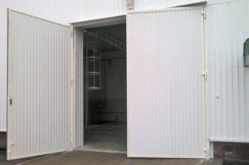 Раздвижные или же распашные ворота могут быть как одностворчатыми, так и двухстворчатыми. Они разительно отличаются от трех предыдущих вариантов. Как понятно из названия, створки попросту распахиваются наружу, открывая проем, куда может заехать машина. По сути, они напоминают простые двери. Если гараж находится на внутренней территории двора, а не выходит проемом наружу, то такая конструкция вполне может подойти.