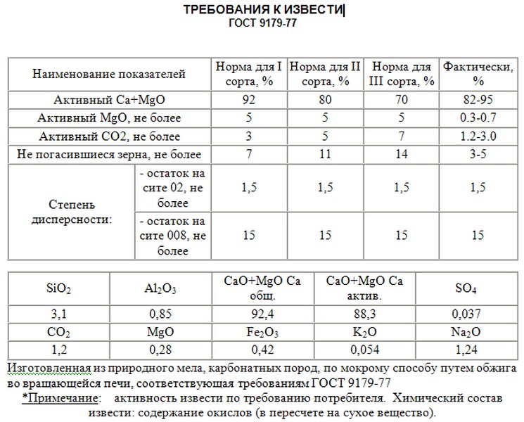 Расход и пропорции извести