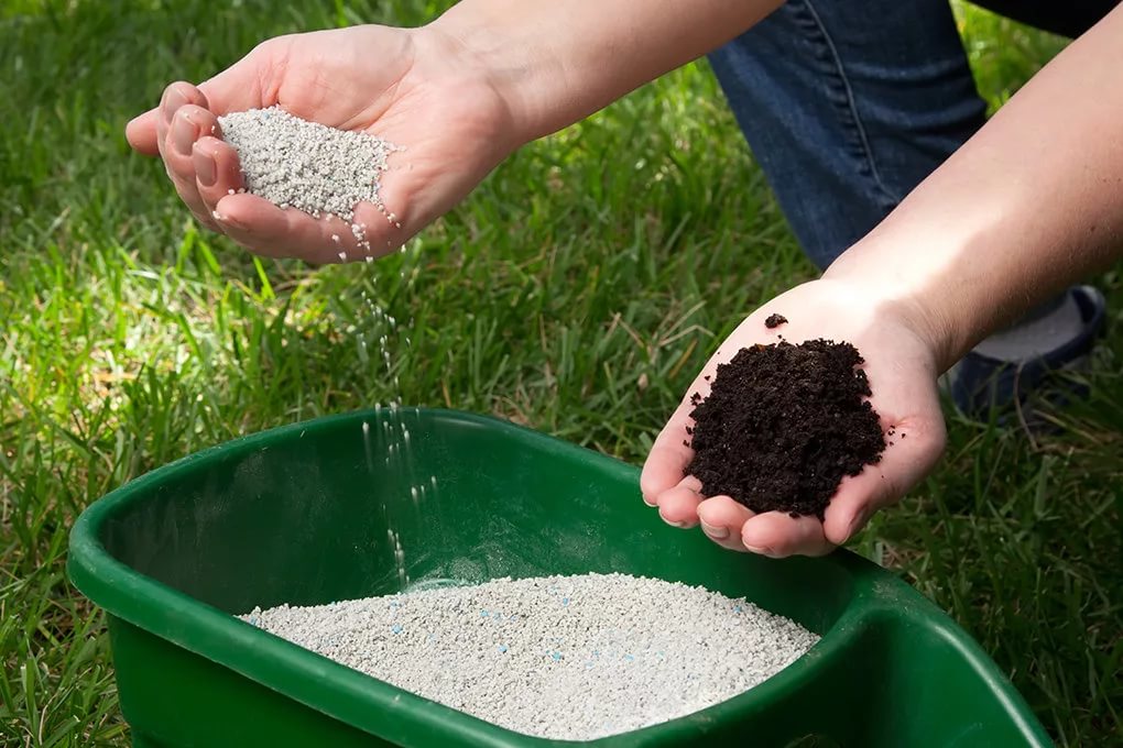 Смешивание материалов для подкормки газонов