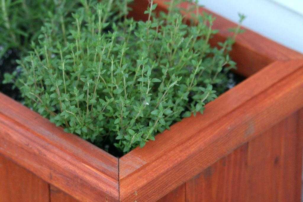 Веточка тимьяна над деревянной приподнятой грядкой – растения-компаньоны тимьяна Если вы также надеетесь попробовать посадить тимьян в качестве компаньона, продолжайте читать, и я поделюсь своими любимыми советами.