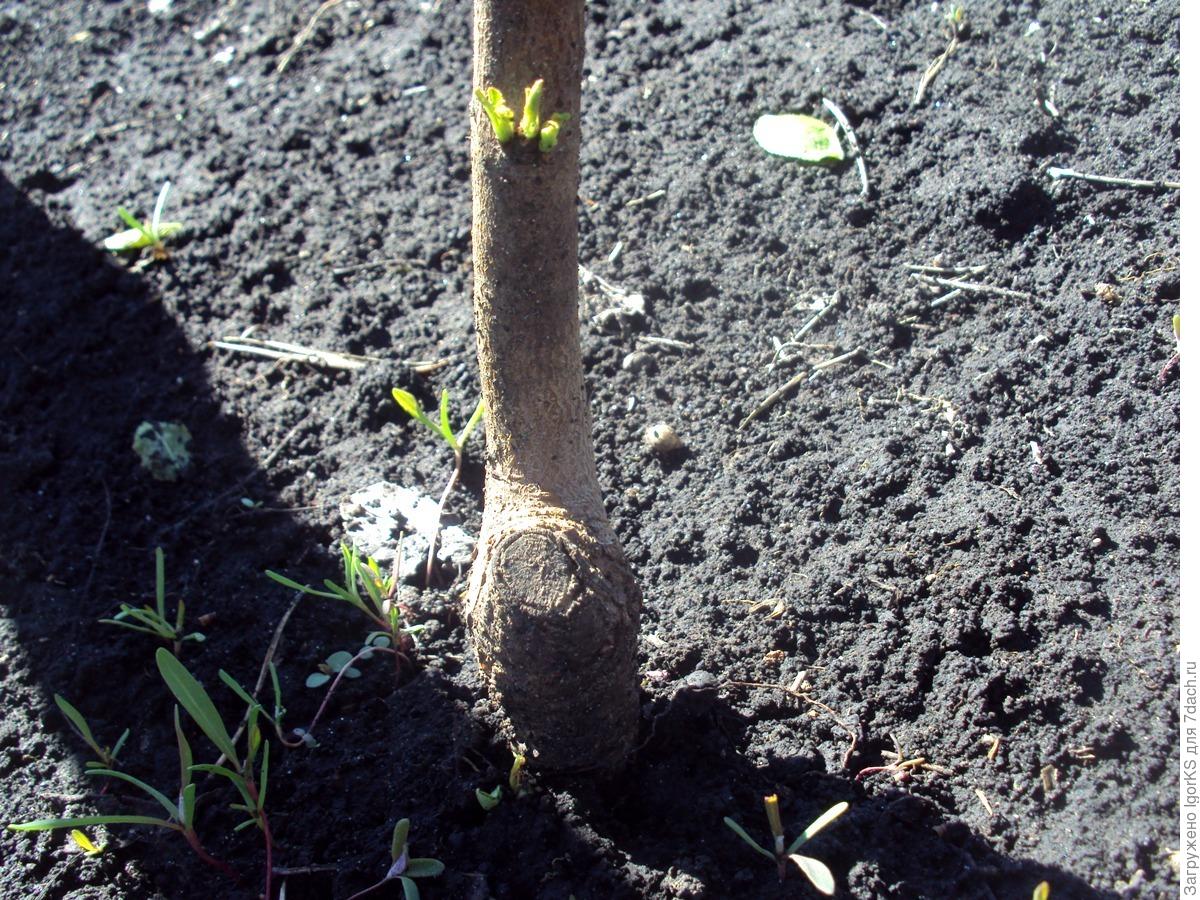 - Если сажаете осенью — нужно также удалить почти все боковые веточки. Оставьте только трех веточек, укороченных на четверть. Место обрезки желательно помазать древесным углем.
