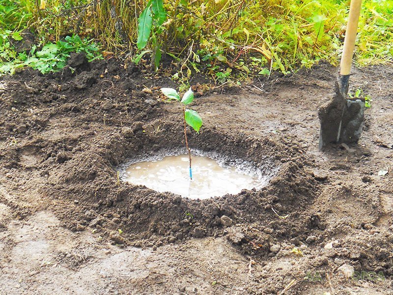 - Хорошо полейте яму перед посадкой.