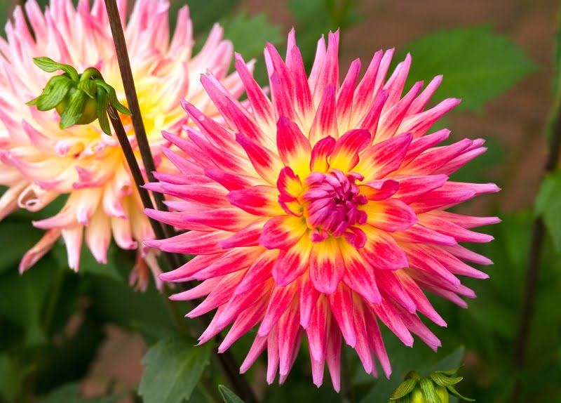 Темно-розовые георгины всегда привносят в сад ощущение драматизма. Выберите из различных размеров и форм, от гигантских пурпурных обеденных тарелок до более мелких розово-фиолетовых миньонов или даже миниатюрных георгин в погребах самых насыщенных розовых оттенков.