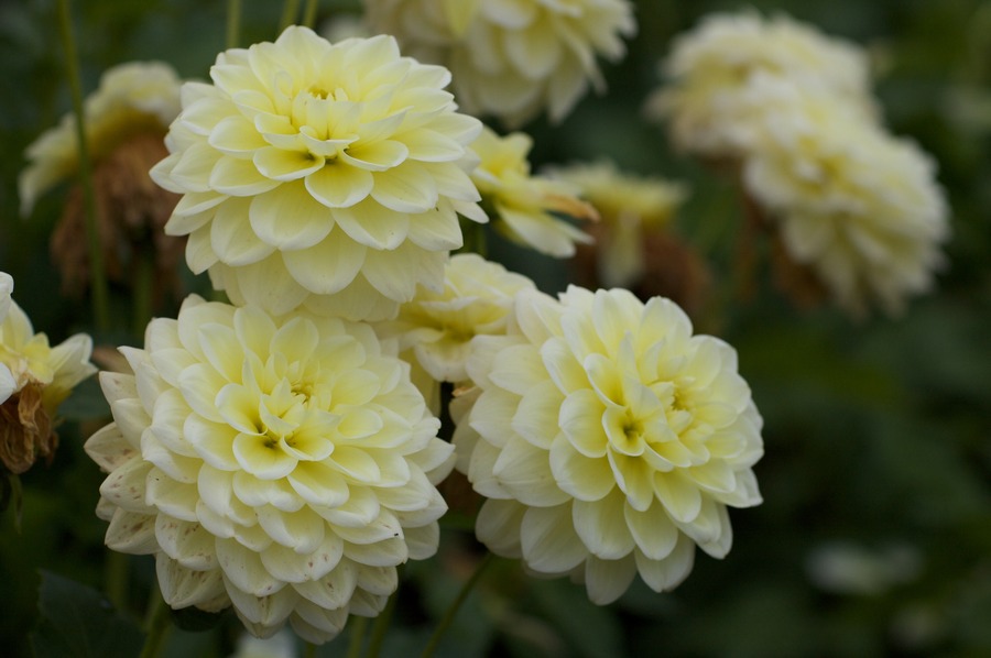 Белые георгины освежают любой ландшафт. Цвета в этой группе варьируются от ледяного, снежно-белого до кремового цвета слоновой кости и масляного крема.