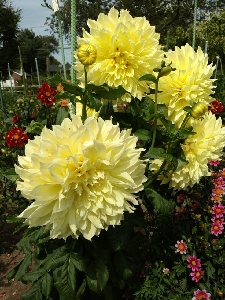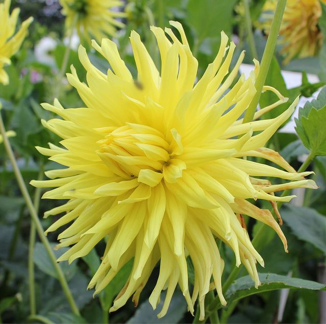 - ‘Flame Thrower’ : неформальный декоративный георгин с скрученными желтыми и оранжевыми лепестками на 8-дюймовых цветочных головках.