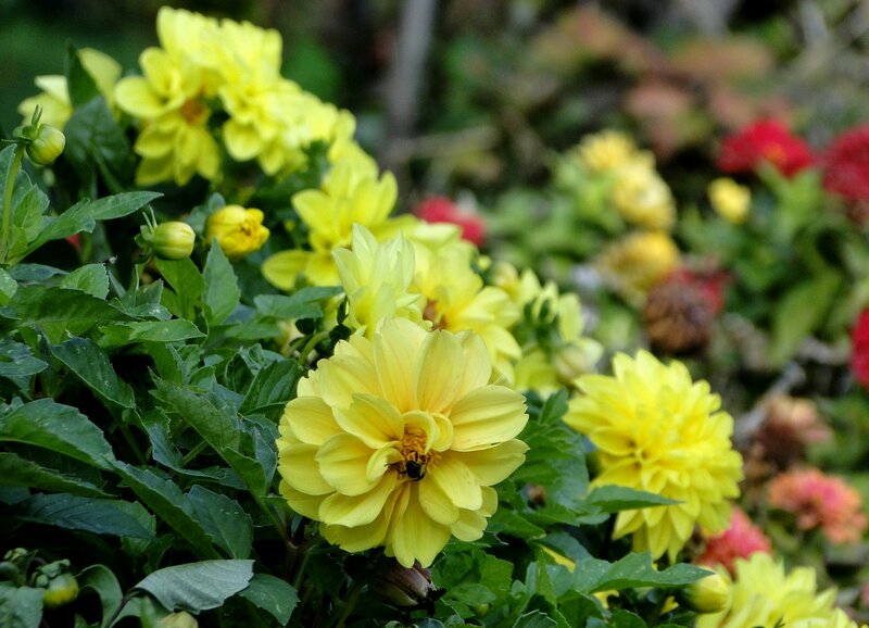 Желтые георгины придают жизнерадостность солнечному свету в любую погоду. Маслянистые, лимонные и солнечные, эти счастливые цветы бывают разных размеров и форм, от бледно-кремово-желтого до насыщенного