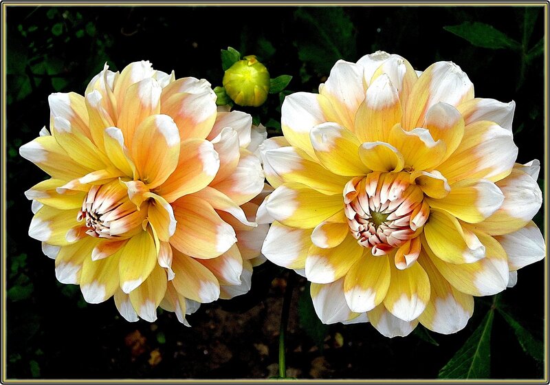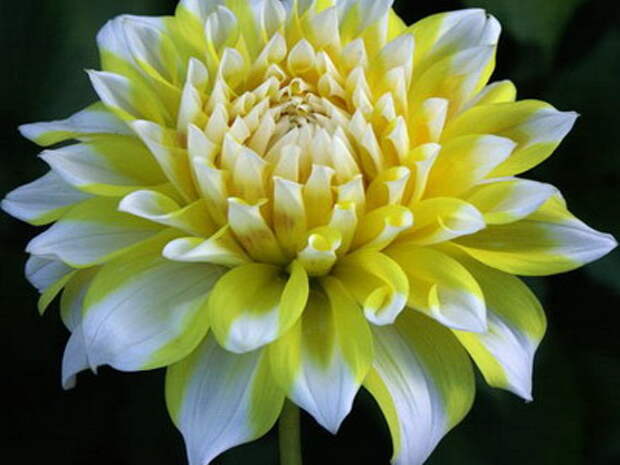 Двухцветные георгины цветут двумя резко разделенными, отчетливыми и чистыми цветами.
