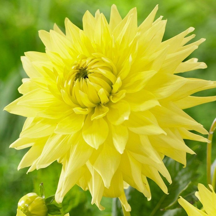 Вид: полукактусовая. Яркие желтые цветы на этом полукактусовом георгине достигают 13 см в ширину. Сорт георгин, который отлично подходит для срезки.
