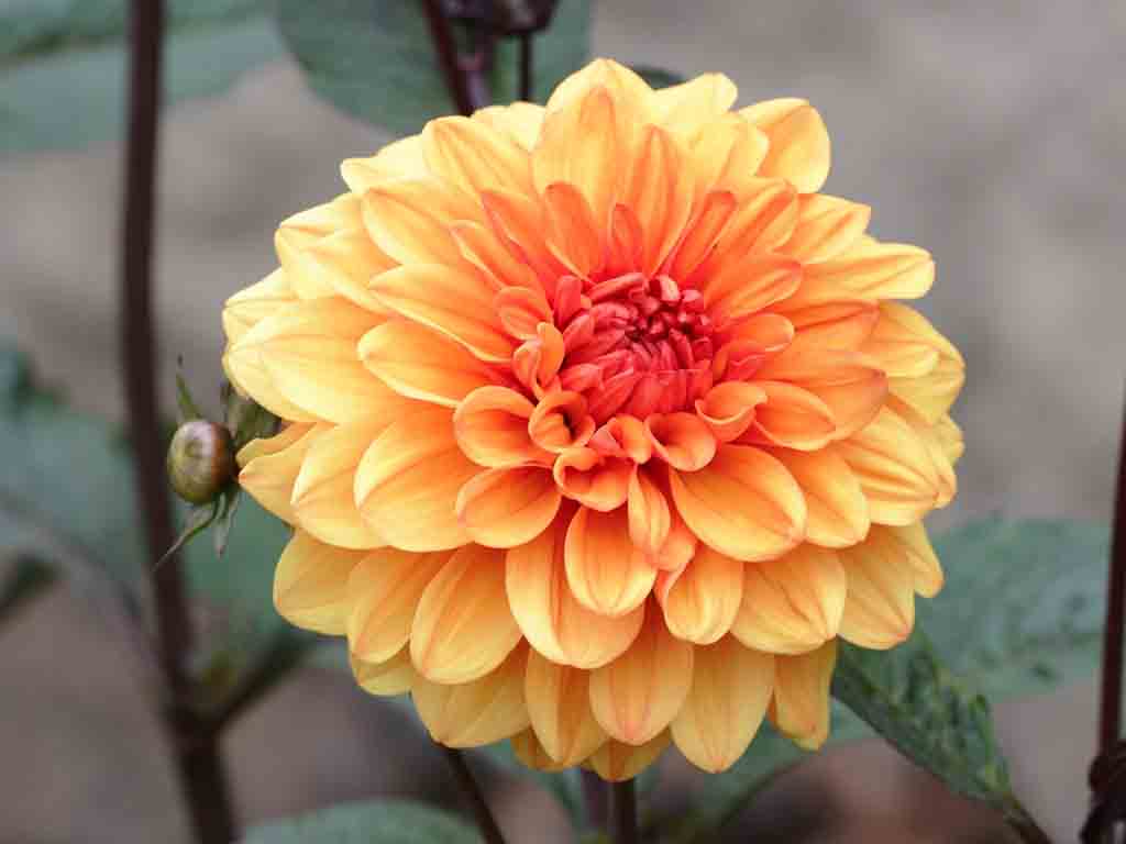 - ‘Summer Flame’ – это формальный декоративный георгин с пряно-оранжевыми лепестками.