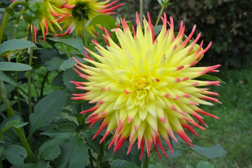 Пышные соцветия напоминают по внешнему виду шапку с множеством изогнутых иголочек. Кактусовые махровые далии могут стать центром различных композиций.