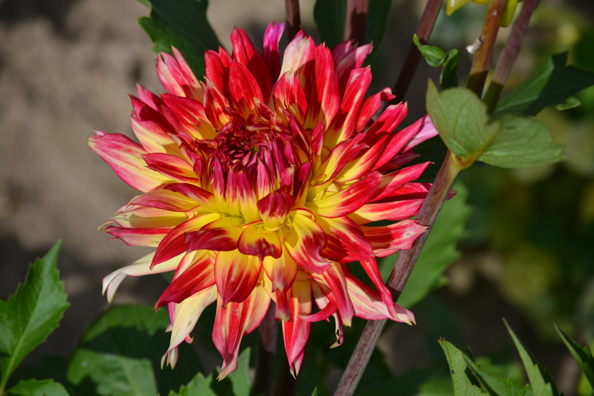 Разновидность калейдоскопа — это обычная для многих разновидность георгинов. Соцветия однотонные, но окраска может быть разной. Одни цветы желтые, другие окрашены в оранжевый, малиновый или красный цвет.У этого сорта крупные махровые соцветия, которые окружены ярко-зелеными листьями бронзового оттенка. Лепестки прямые, слегка изогнутые наружу, что делает цветок очень пышным и симметричным.