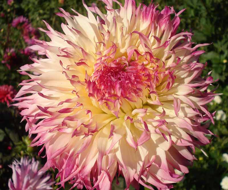 Сорт георгин Максим относится к декоративным, отличается формой и цветом лепестков.