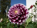 Дуэт – довольно крупный декоративный сорт георгинов, до 20 см в диаметре. Цветки имеют пурпурный окрас с белыми кончиками. Сорт пригоден для срезки.