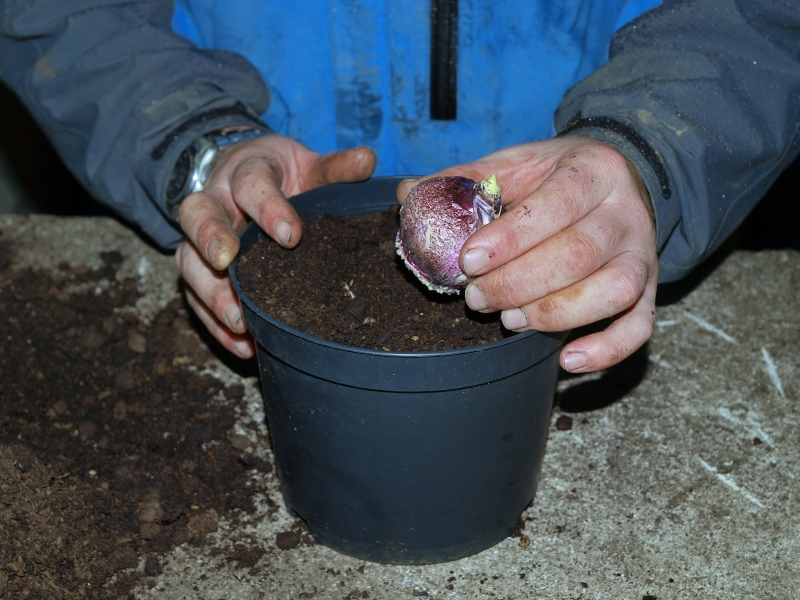 Посадка гиацинтов в грунт осуществляется в конце сентября или начале октября. При более ранней высадке гиацинты могут быстро тронуться в рост и погибнуть во время зимних холодов, а при более поздней посадке гиацинты могут не успеть укорениться до заморозков. Подготовить грунт к посадке гиацинтов нужно заблаговременно: перекопайте почву на глубину 30-40 см, внесите минеральные удобрения (приблизительно 70 г суперфосфата, 15 г сернокислого магния, 30 г сернокислого калия на 1 м²), трех-четырехлетний перегной или прелый компост из расчета 10-15 кг на 1 м².