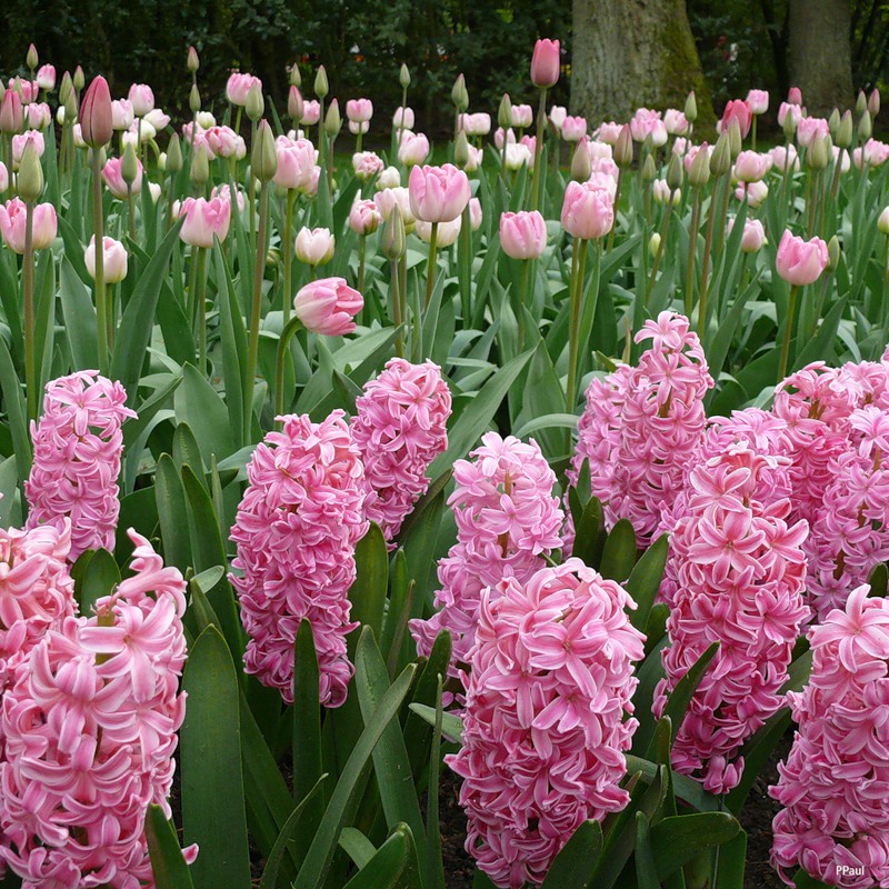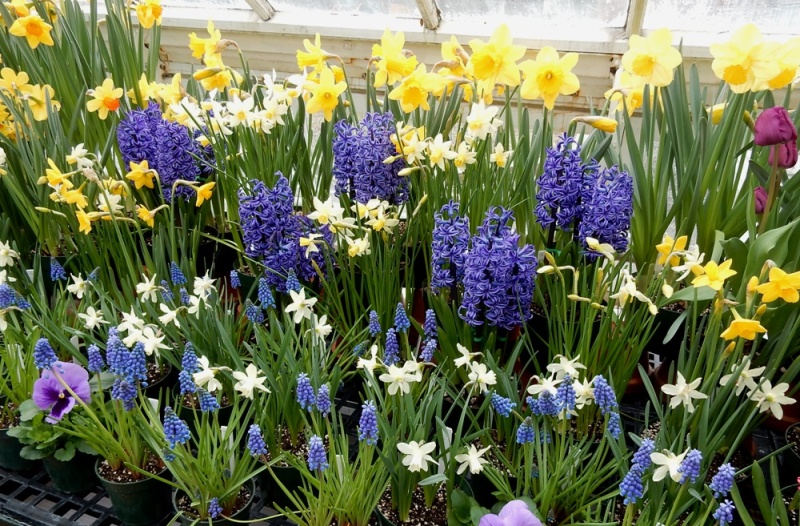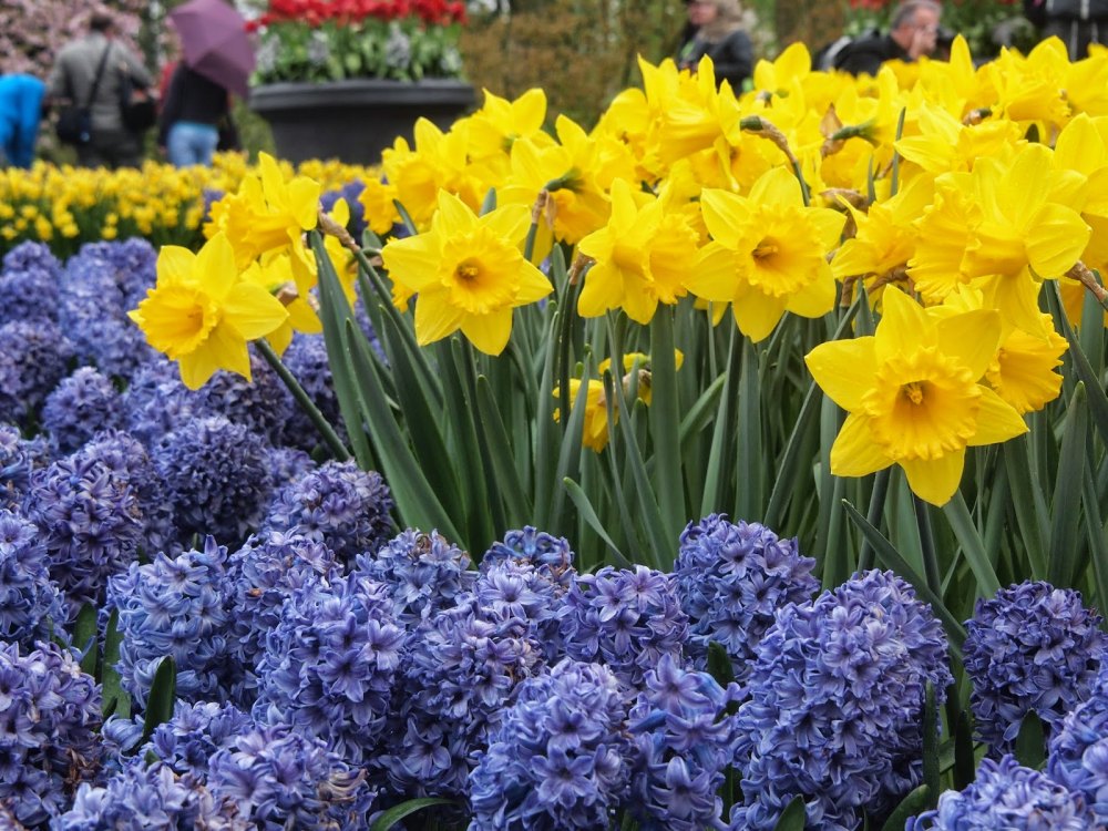 Очень распространены синие раннецветущие гиацинты, сортов Rembrandt, Delft Blue.