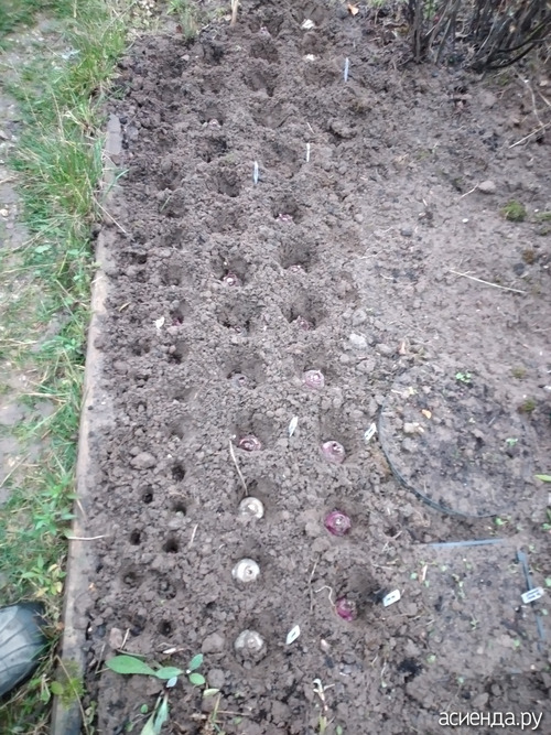 Луковицы высаживают в первой половине октября в легкую, плодородную, хорошо дренированную почву. Глубина лунки должна равняться высоте 3 луковиц (это обычное правило высадки луковичных цветов на даче).