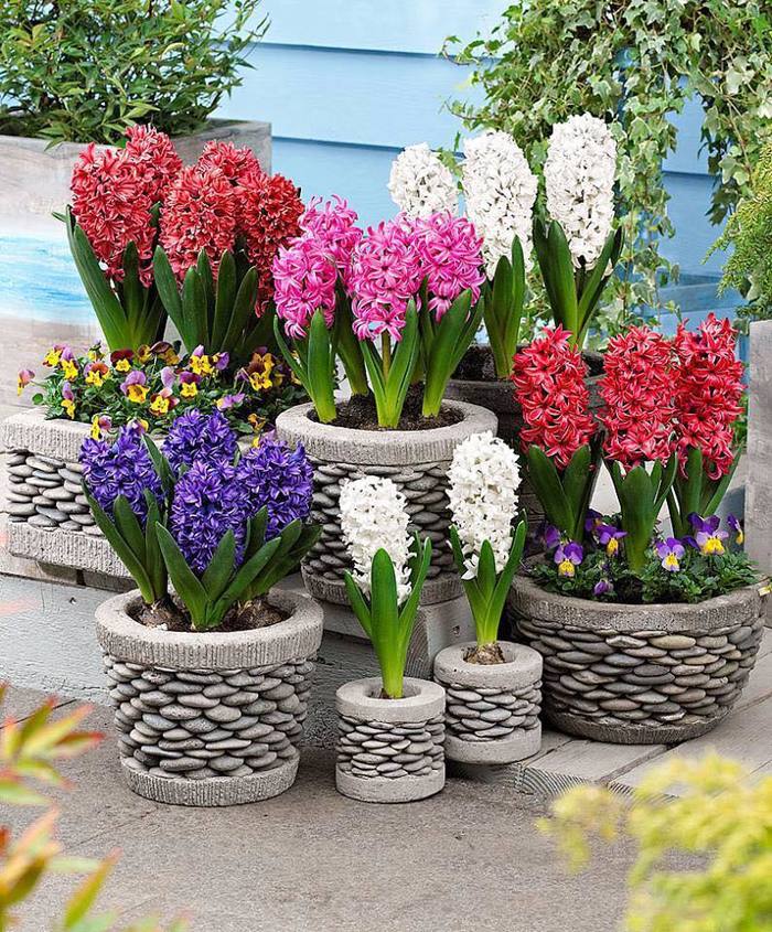 Гиацинты великолепно смотрятся в контейнерах как сами по себе, так и в сочетании с другими весенними луковицами, такими как нарциссы и ранние тюльпаны.