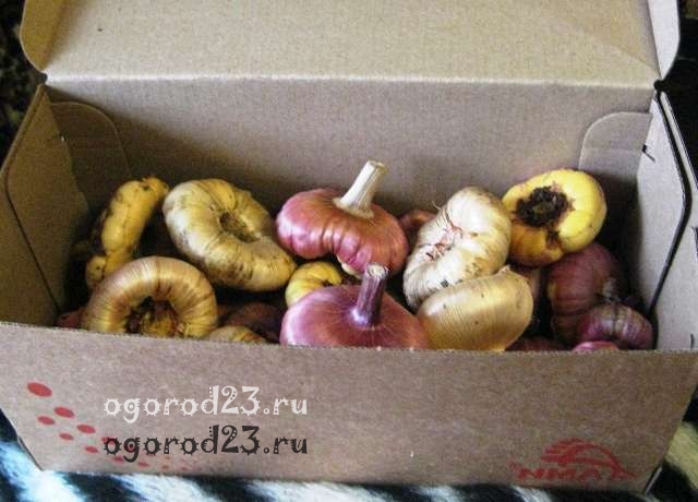Так они стоят и сушатся до полутора месяцев. Затем посадочный материал перебирают, убирая старые луковицы с молодых, обрезают остатки корней и выкручивают пенек сухого стебля. Одновременно происходит выбраковка подпорченных болезнями. Жалеть их не следует, так как один зараженный паршой экземпляр за зиму заразит все, которые окажутся с ним рядом.