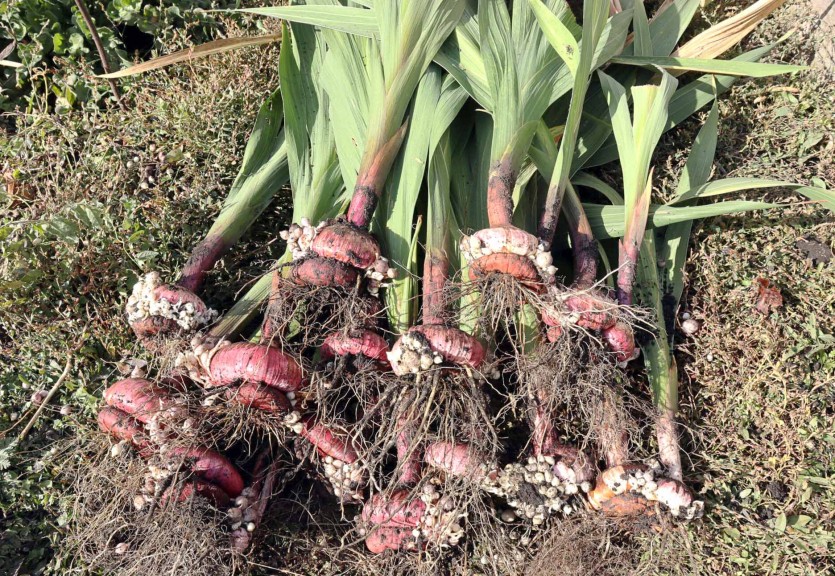 Когда листья начнут окрашиваться, и вы уверены, что все готово, вы можете выкопать клубнелуковицы.