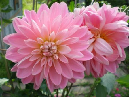 Георгины привлекают внимание своими крупными и яркими цветками в виде корзинки. По краям располагаются язычковые лепестки, в середине – трубчатые. Окраска у них — самая разнообразная: от пастельных до темных насыщенных цветов.