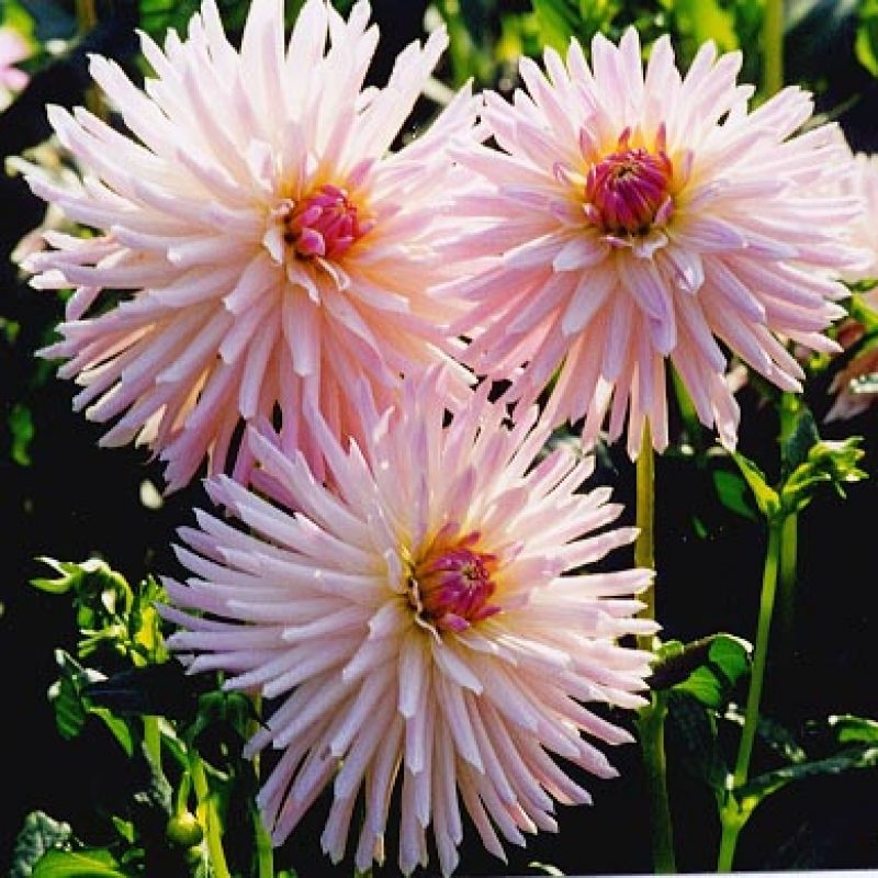Период цветения его растянутый, с середины июля до поздней осени. Кактусовые георгины неприхотливы, требуют умеренного полива.
