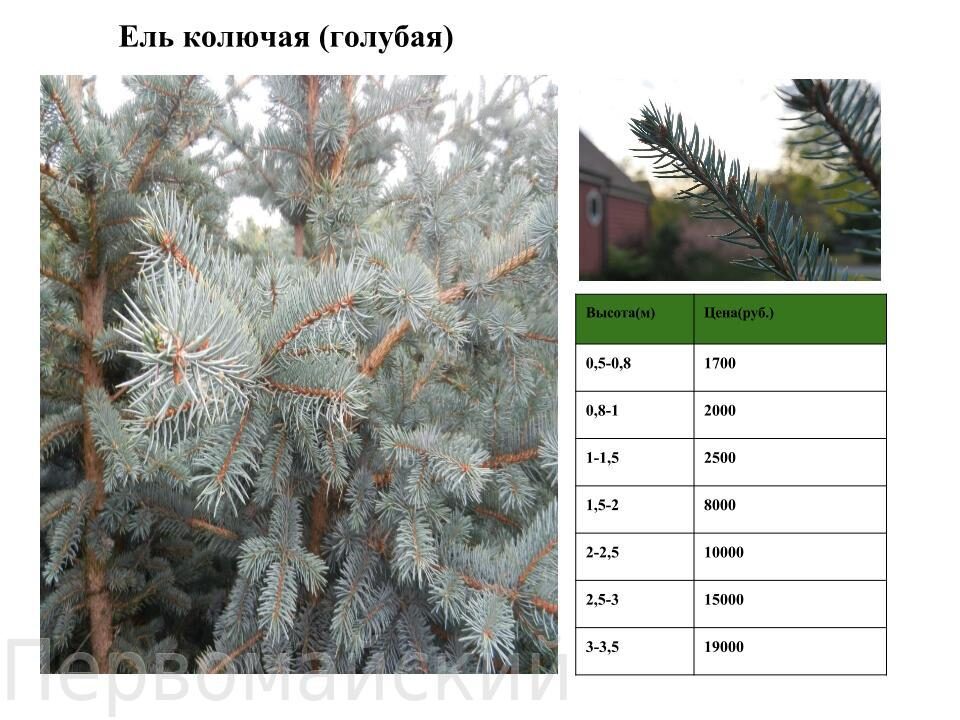 Размер голубой ели