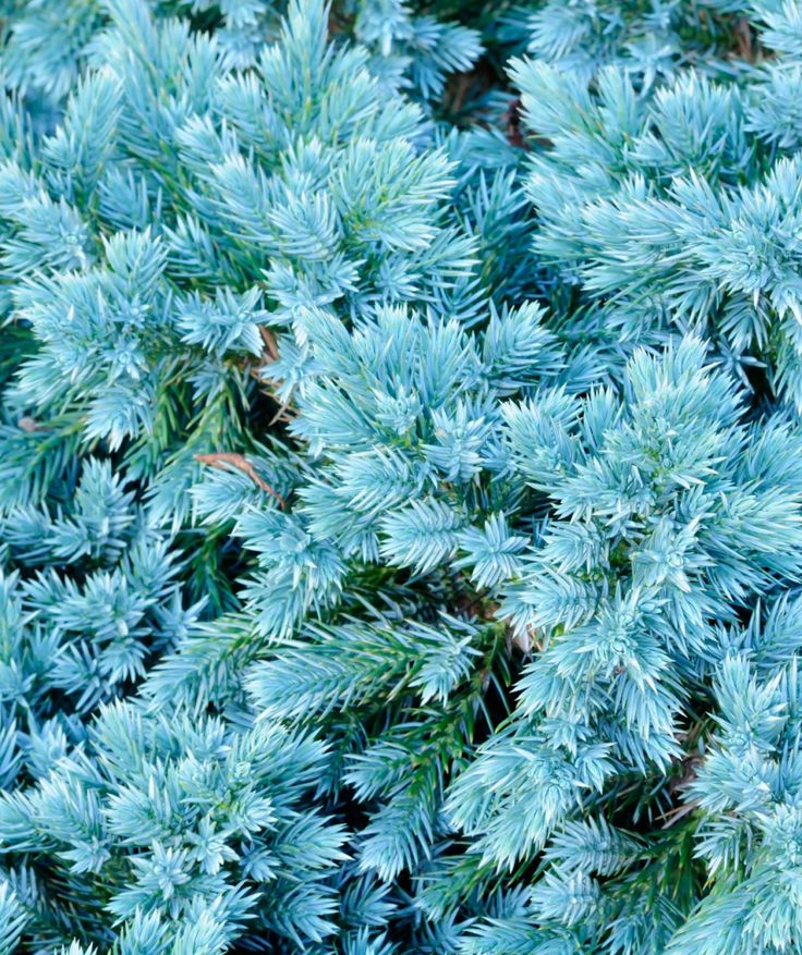- ˈBlue Carpetˈ — стелющийся, достаточно быстро разрастающийся кустарничек подходит для создания голубого с зеленым отливом живого ковра. Побеги свисают, иголочки колючие, жесткие.