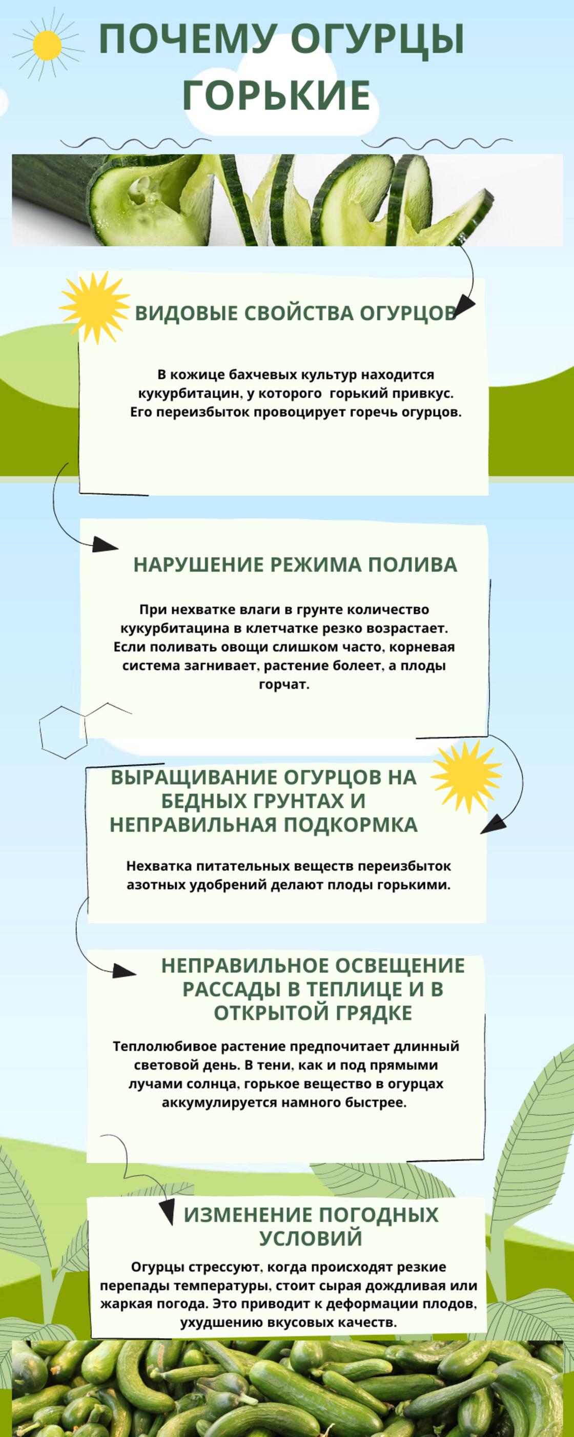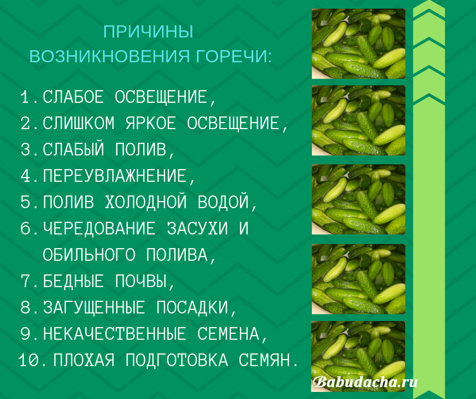 Таким образом, резюмируя, почему горчат огурцы, можно выделить следующие причины: