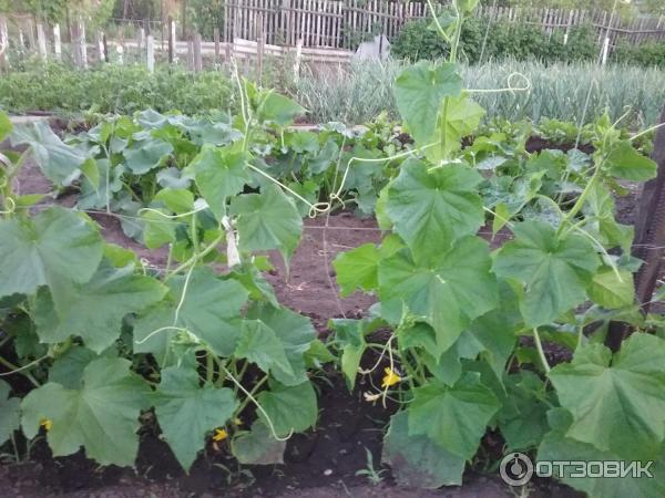 Огуречная лиана быстро и широко разрастается и требует для удобства свободного места. При выращивании в открытом грунте используйте шпалеру и сажайте растения через каждые 20 см в ряду и через 30-40 см между шпалерами. Всегда прореживайте и удаляйте более слабые растения. Не позволяйте плетям отрастать более чем на 1,5-2 метра. Прищипните верхушки.