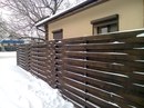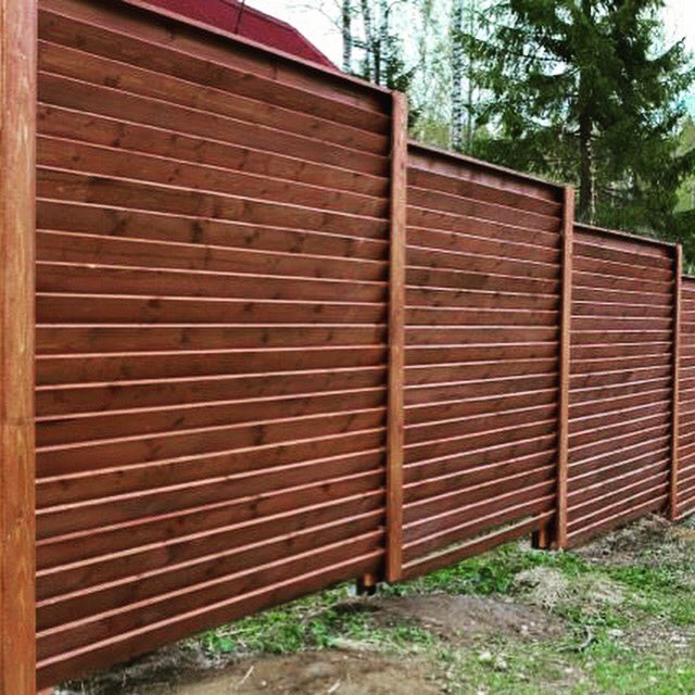 Это замечательный образец забора, который обеспечивает максимальную конфиденциальность. Он состоит из горизонтальных деревянных досок, между которыми нет места. Забор полностью отделяет двор от соседнего участка, не выглядя эффектно или внушительно.